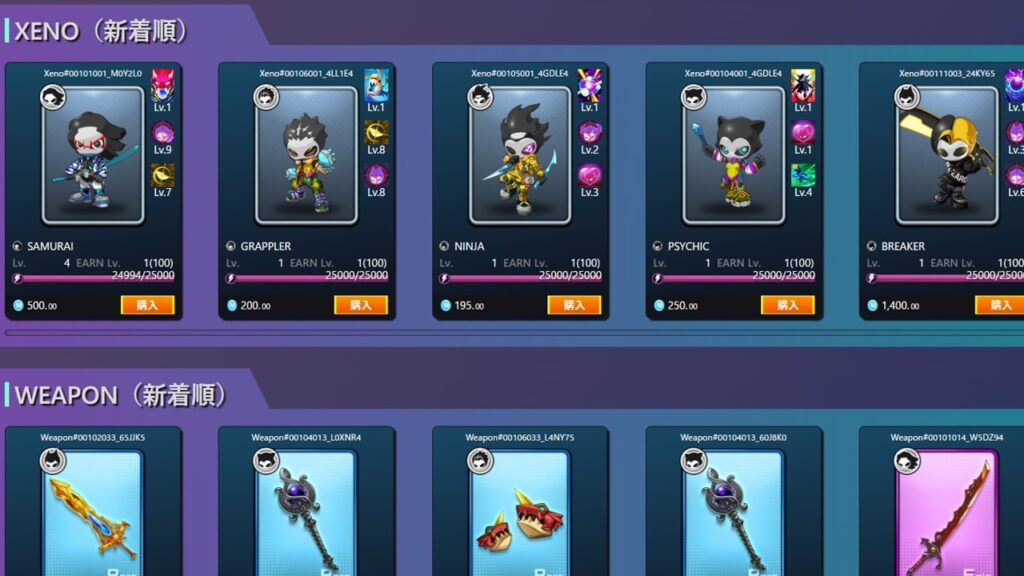 プロジェクトゼノは、ゲーム開始時に6種のクラスから好きなキャラを3体選び、基本プレイ無料で遊べます。ただし、配布キャラには仮想通貨を稼ぐ機能がないため、PvPバトルで仮想通貨を獲得するには、NFTキャラを最低1体買わなければいけません。逆にキャラを購入する前に無料キャラで練習することができるのでユーザーが購入を考える時間があるとてもやさしいゲームになっております。