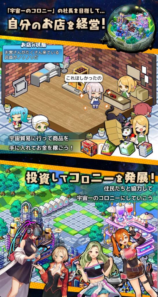 星戦で得た報酬を用いて、宇宙都市「コロニー」を発展させたり、モンスター強化に必要な素材「エネル」を獲得できる惑星探索へ向かったりすることができます。