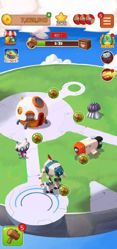 稼いだコインで村づくりを行っていきます。村は5種類の建築物が用意されており、それぞれ完成までの段階があります。