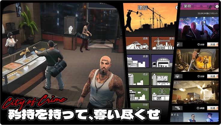 犯罪都市:City of Crimeの特徴は、ギャングやマフィア、ヤクザや暴力団などの悪党が大集結して、プレイヤーの欲望のままに様々な「ワル」体験ができるストラテジーゲームであることです。