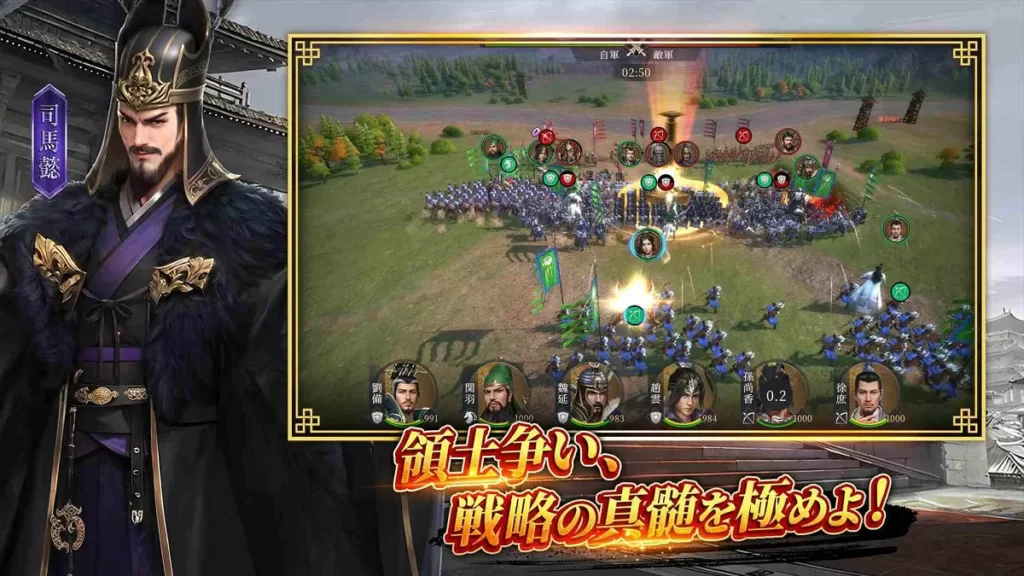 ゲーム内では、武将たちが重要な役割を果たします。プレイヤーは彼らを任命し、その特技を活かして戦局を有利に進める必要があります。適切な武将の配置は、戦略の成功に不可欠です。