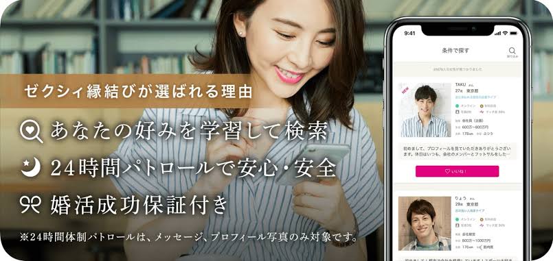 ゼクシィ縁結びは、日本の結婚情報サービスで、結婚を真剣に考える独身の男女が出会い、結婚を成立させるためのプラットフォームです。ゼクシィ縁結びは、婚活に特化したサービスを提供し、結婚を希望する人々が出会える場を提供しています。